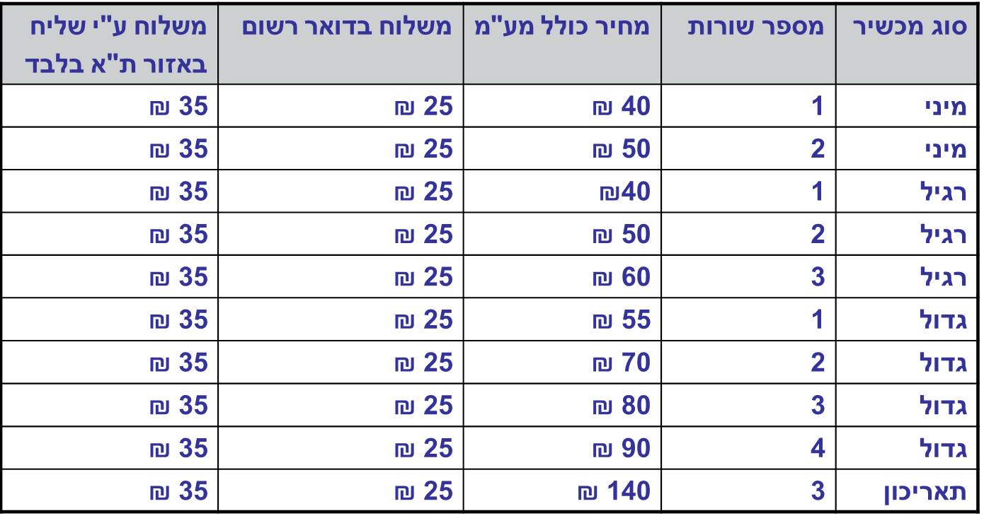 9. המחירים כוללים מע"מ ותקפים בהזמנה דרך האתר בלבד: